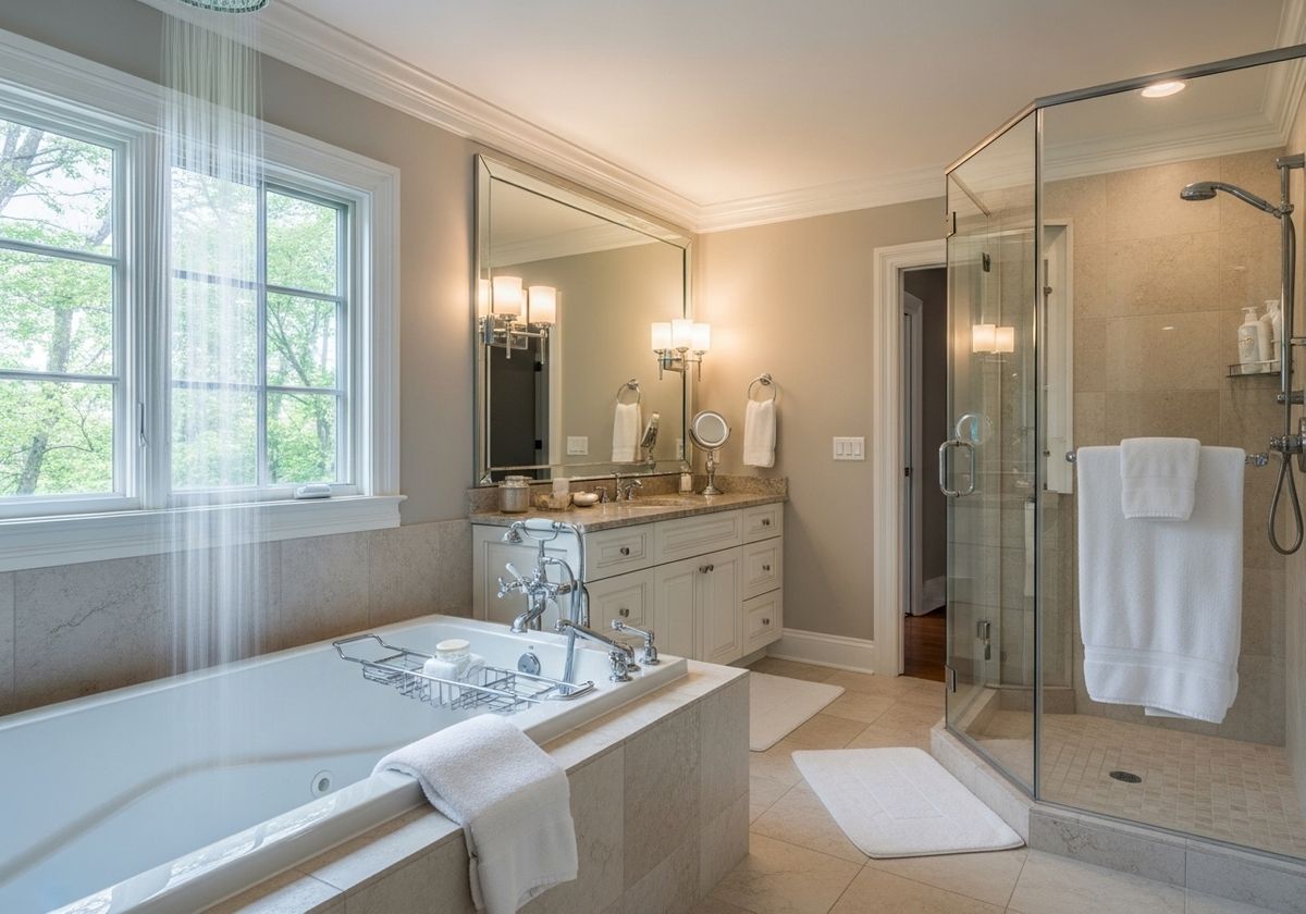 Transform your bathrooms into personal retreats with spa-like features. Think deep soaking tubs, rainfall showerheads, and heated floors that provide ultimate relaxation. Custom vanities, elegant lighting, and high-end fixtures can further enhance the luxurious ambiance, creating a serene space to unwind.